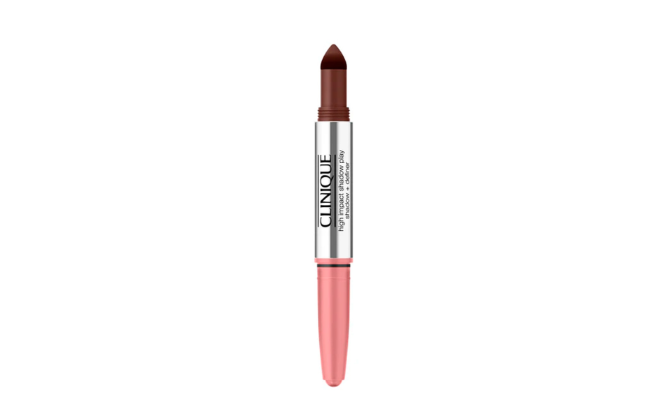 Da un lato, un ombretto in stick cremoso colora completamente la palpebra.