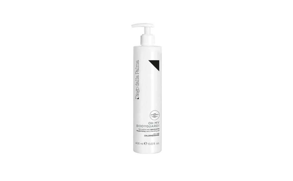 Gel igienizzante idro-alcolico, arricchito con clorexidina, potente e conosciuto antibatterico.