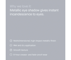 L'ombretto metallico tridimensionale è una novità progettata per illuminare istantaneamente lo sguardo.