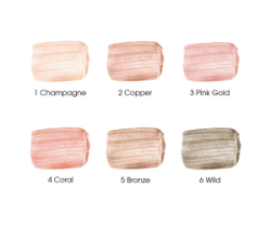 Le 6 nuance, con finish satinato e pailleté, si armonizzano e si sovrappongono facilmente, per un maquillage su misura e un effetto no transfer.