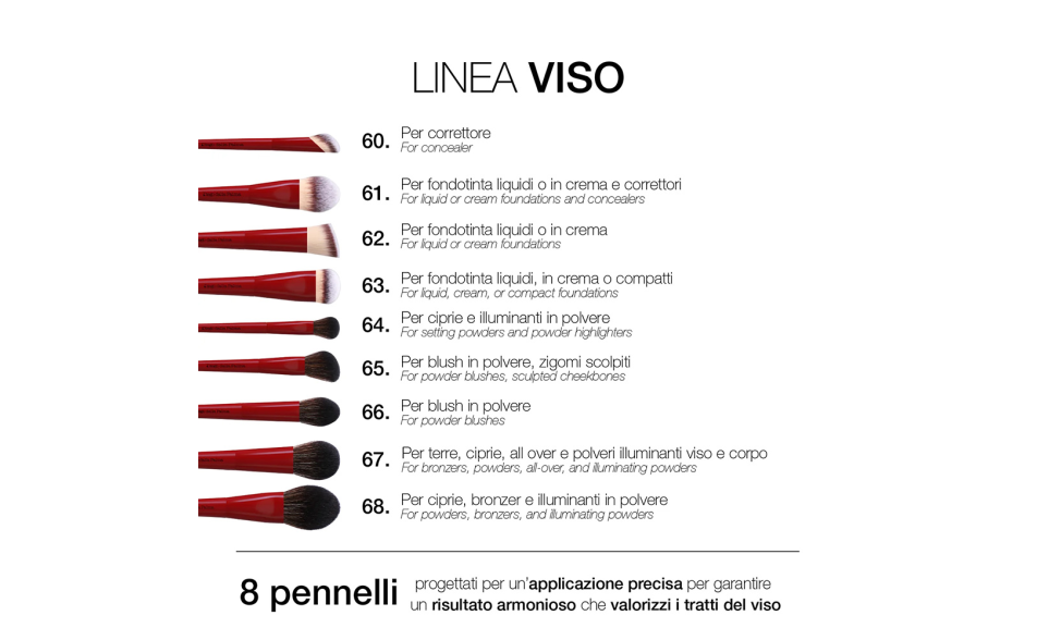 - Applicazione rapida e uniforme di polveri su viso e corpo.
