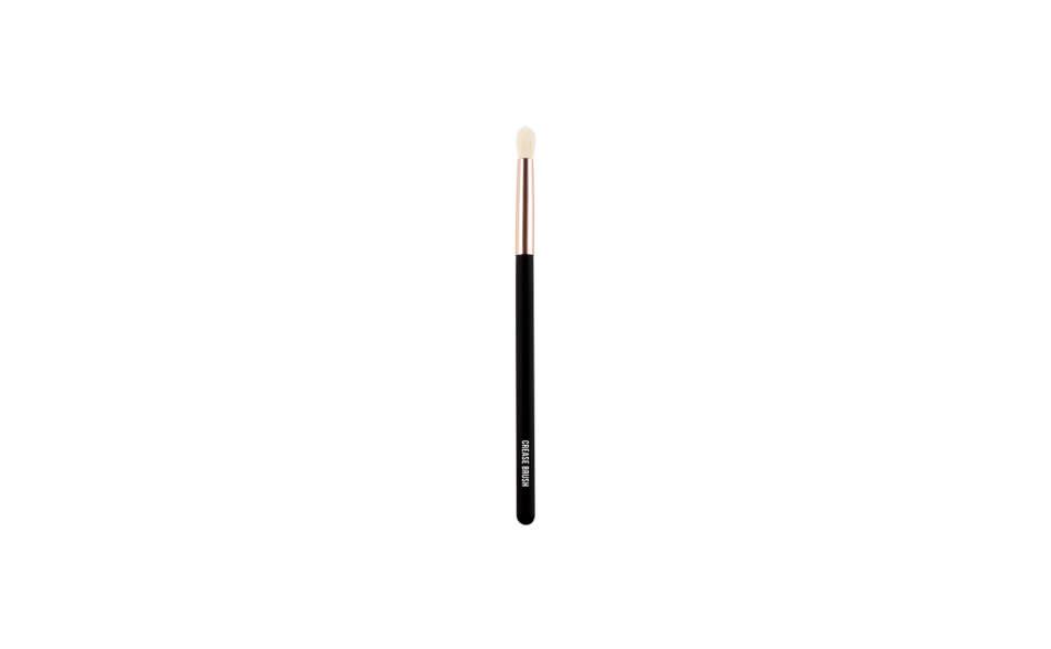 “Crease brush” è un pennello per occhi in fibra sintetica caratterizzato dalla forma conica e dalle setole di intensa densità che rendono possibili le applicazioni e costruzione dei pigmenti nella piega dell’occhio.