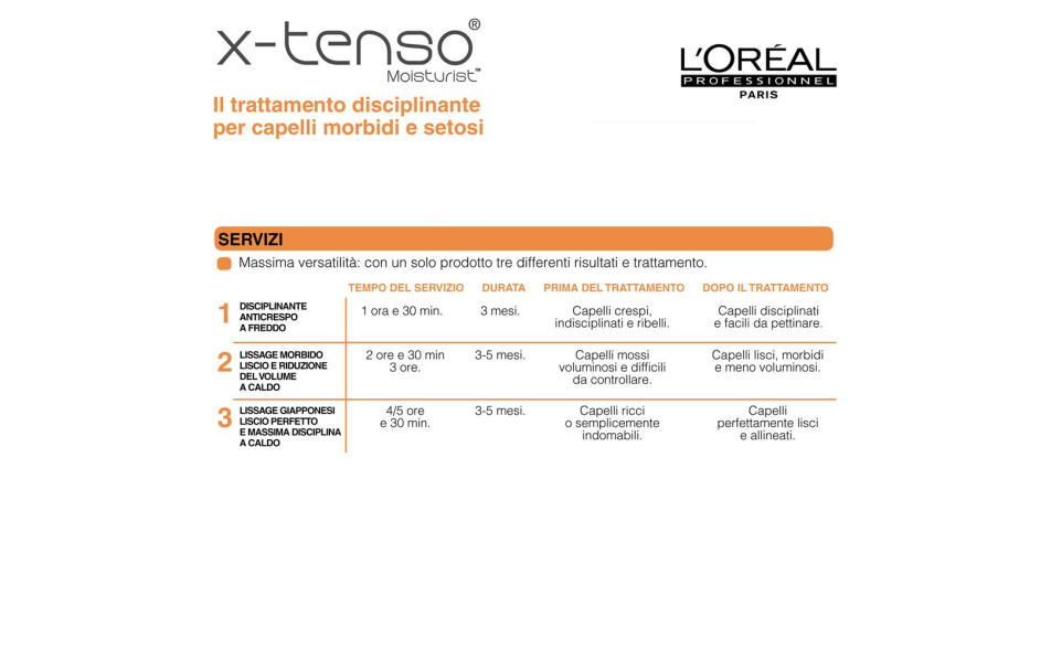 X-Tenso Moisturist trasforma i capelli ribelli, ricci, mossi o crespi, rendendoli meravigliosamente lisci e morbidi come la seta fino a 60 giorni. Ideato per dare ai capelli un look naturale.