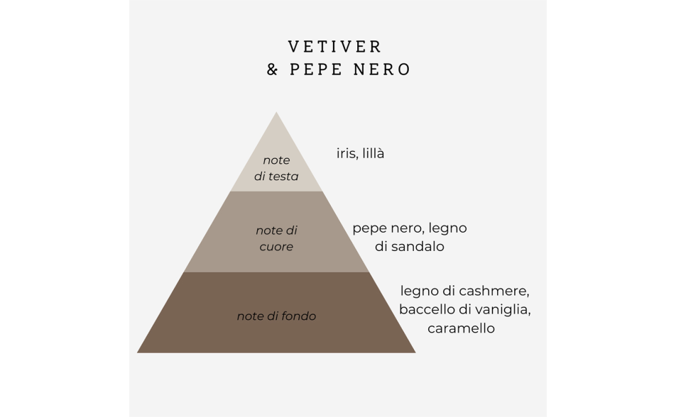 Vetiver & Pepe Nero – Un mix equilibrato di freschezza legnosa e calore speziato, perfetto per chi ama le profumazioni decise ma eleganti.