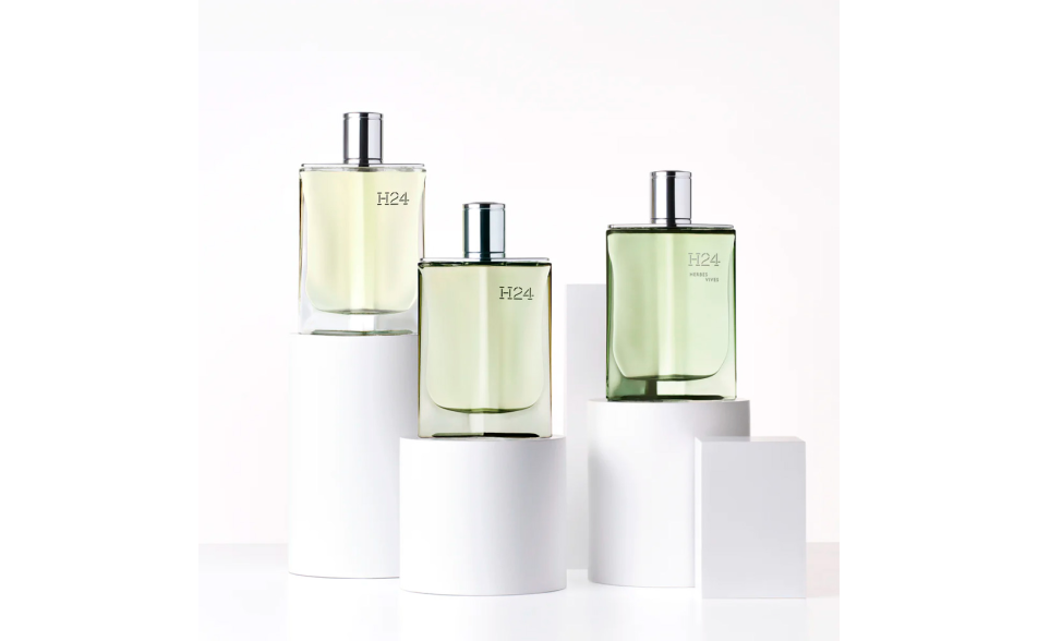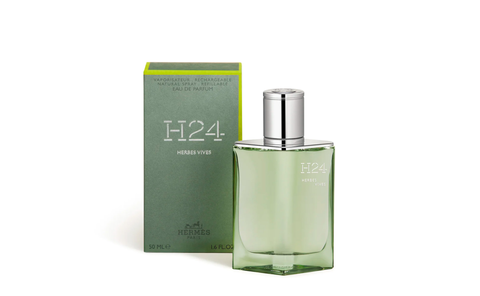 H24 Herbes Vives incarna anche l'etica di Hermès, con il 15% del vetro riciclato utilizzato per il flacone e la pasta di carta riciclata ECF per l'astuccio.