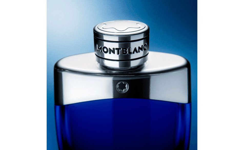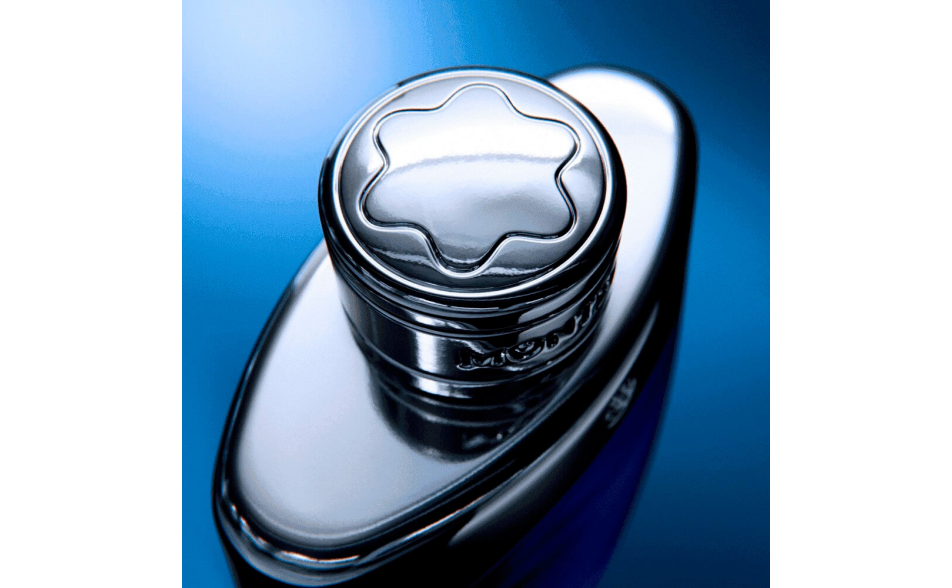 Per la prima volta, il flacone Legend rivela il liquido al suo interno attraverso il vetro blu trasparente, elegantemente abbinato a una parte superiore argentata ornata dal logo Montblanc.