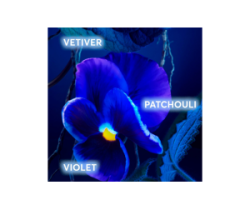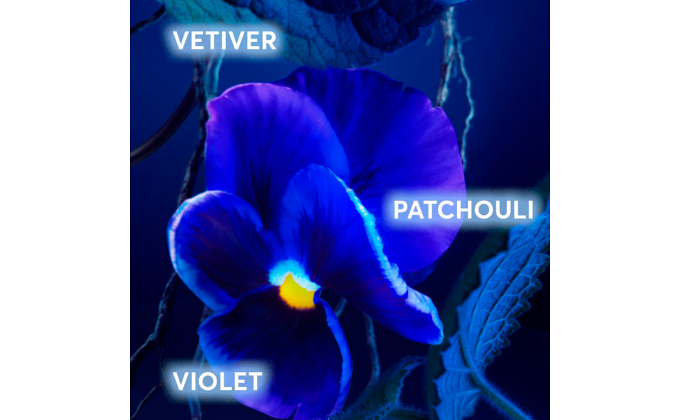 Le note fresche di foglia di viola si mescolano con l'essenza verde del vetiver nel cuore, mentre il patchouli conferisce un finale terroso e avvolgente.
