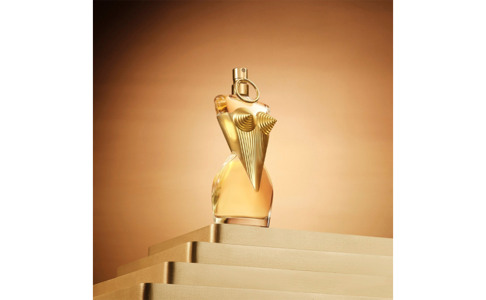 L'iconico corsetto di Jean Paul Gaultier si veste di oro radioso per Gaultier Divine. Le sue curve audaci e spigolose rappresentano una femminilità forte e orgogliosa, che incarna la sicurezza e il potere delle donne moderne.