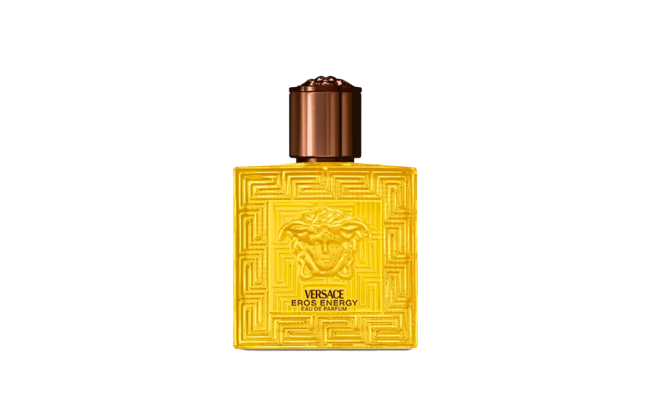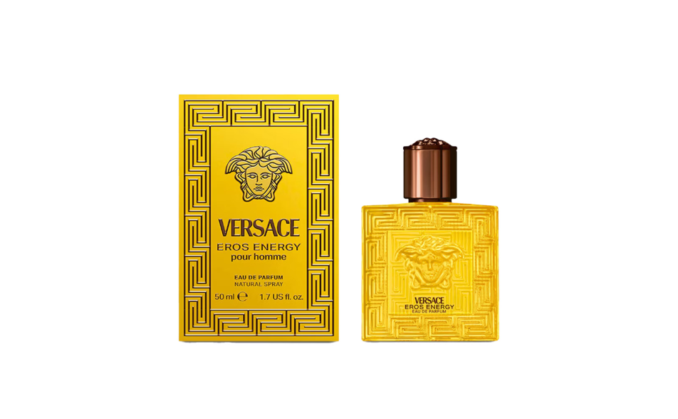 Il flacone di Eros Energy si presenta in un elegante colore giallo chiaro con dettagli ispirati alla tradizione greca, tra cui l'incisione Greca e una Medusa centrale. Il tappo color bronzo aggiunge un tocco di raffinatezza e robustezza, perfetto per una fragranza dall'anima potente.