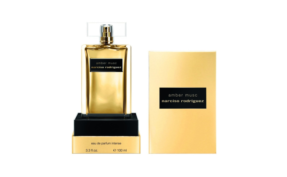 Il flacone di Amber Musc Eau de Parfum Intense condivide la silhouette grafica iconica e la laccatura dorata che contraddistinguono tutta la Musc Collection. Caratterizzato da un'elegante placca nera con scritte dorate, il flacone è custodito in una scintillante custodia dorata. Questo contrasto di opulenza metallica con la trasparenza pura del tappo riflette l'estetica raffinata e moderna di Narciso Rodriguez.