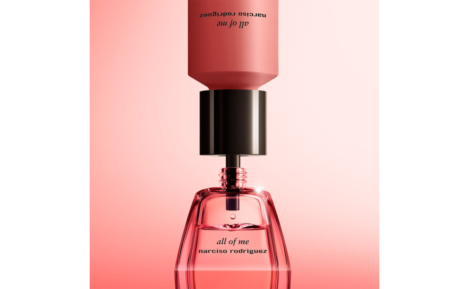 All of Me Eau de Parfum Intense si apre con avvolgenti note di testa di iris nero e l'opulenza dell'assoluta di gelsomino sambac, che si posano delicatamente sulla pelle. Al centro, si svela un bouquet moderno di geranio e rosa arricchito dalla sensualità della tuberosa, mentre le note di fondo esplodono con il cuore di muschio iconico di Narciso Rodriguez combinato con legno di sandalo australiano da fonti di responsabilità e il calore ammaliante della vaniglia, lasciando una scia intensa e indimenticabile.