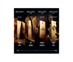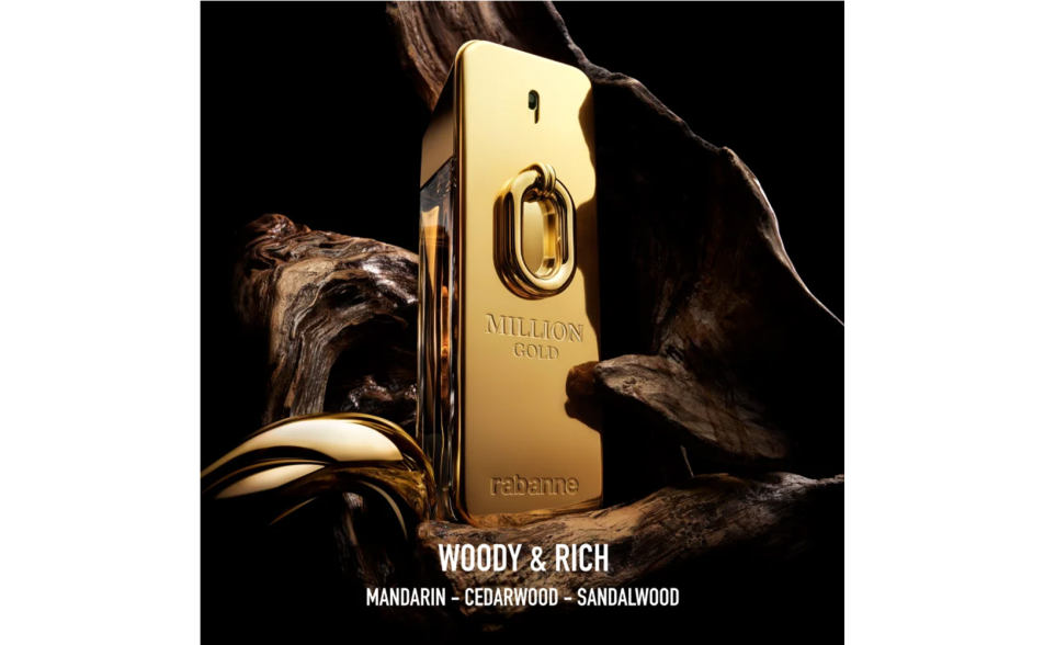 Rabanne Million Gold è l’eau de parfum da uomo che incarna l’essenza del lusso, del carisma e della sicurezza. Ancora più elegante e audace del suo predecessore, questa fragranza avvolgente irradia energia estatica, celebrando l’audacia di un uomo di successo. Un profumo legnoso e speziato che seduce i sensi con un mix ultra-sensuale di mandarino fresco, spezie calde e legni pregiati.