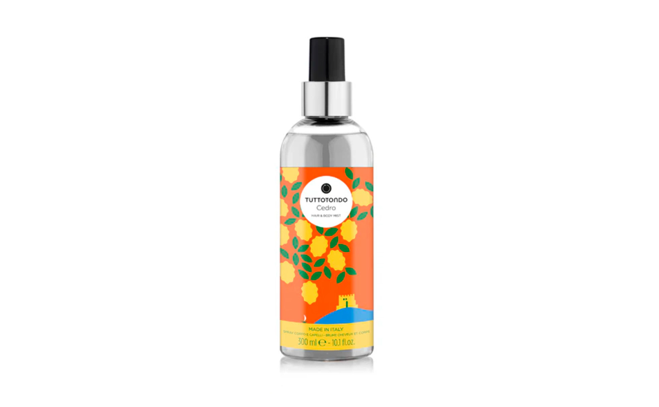 Hair & Body Mist Cedro di Tuttotondo è uno spray profumato senza alcool, pensato per rinfrescare e idratare corpo e capelli con un gesto leggero e sensoriale. La sua formula vegana, cruelty free ed ecosostenibile è arricchita con estratti di cedro e olivo dalle proprietà antiossidanti e tonificanti.