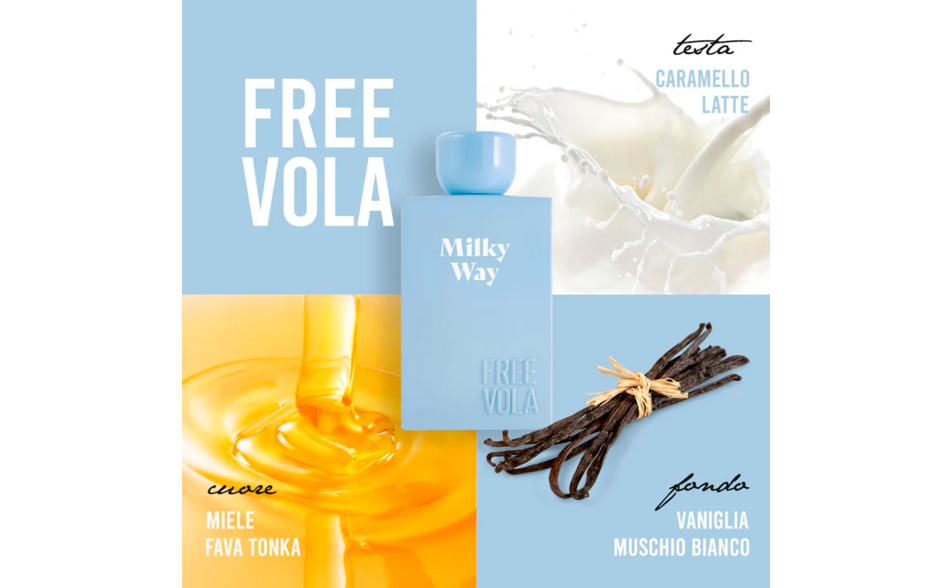 Milky Way è la fragranza gourmand che coccola i sensi e accende la fantasia. Dolce, avvolgente e luminosa, è pensata per giovani donne romantiche e sognatrici che desiderano trasformare ogni giorno in un momento magico.