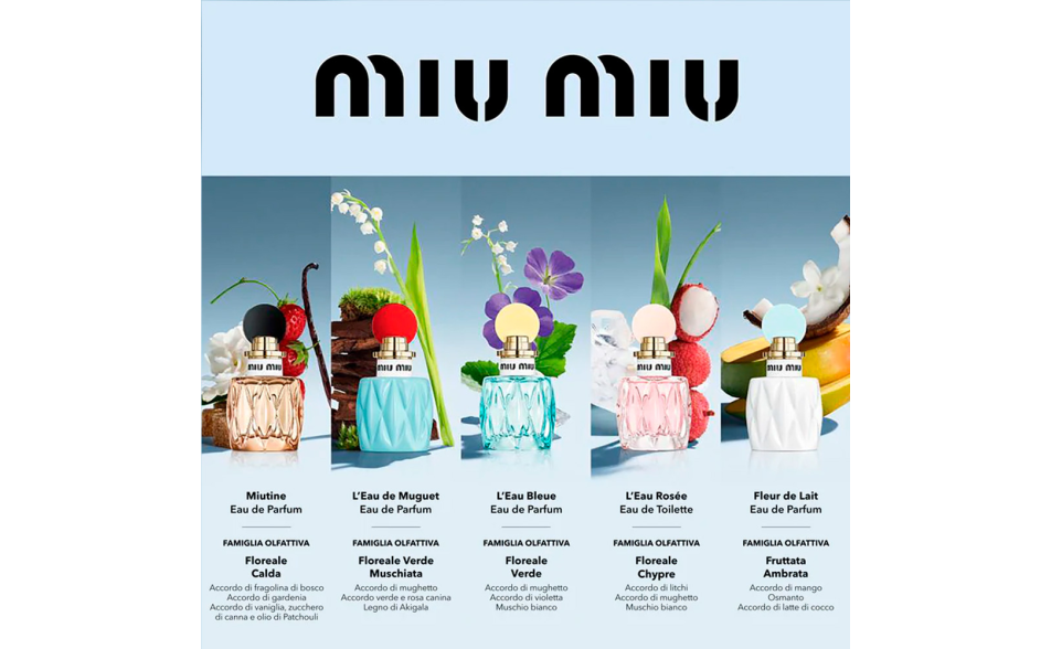 Fleur de Lait di Miu Miu è una carezza profumata che rievoca il piacere innocente di un dolcetto al latte e mango in una giornata estiva. La sua composizione avvolgente fonde la dolcezza fruttata con un’eleganza floreale delicata, creando un equilibrio perfetto tra sensualità e leggerezza.