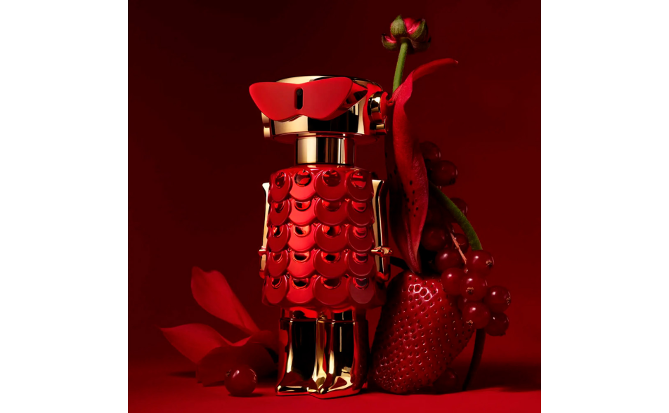 La firma olfattiva iconica di FAME si arricchisce dell’inconfondibile twist Rabanne. Un estratto di fragola super succosa accende la composizione, trasformando la scia in un’esperienza sensoriale intensa, seducente e inaspettata.