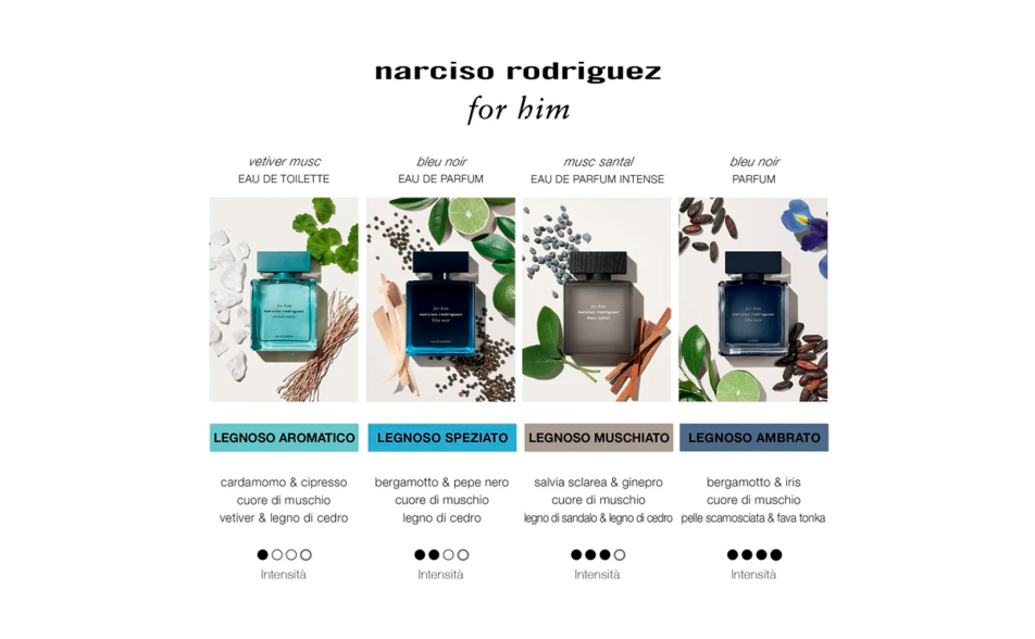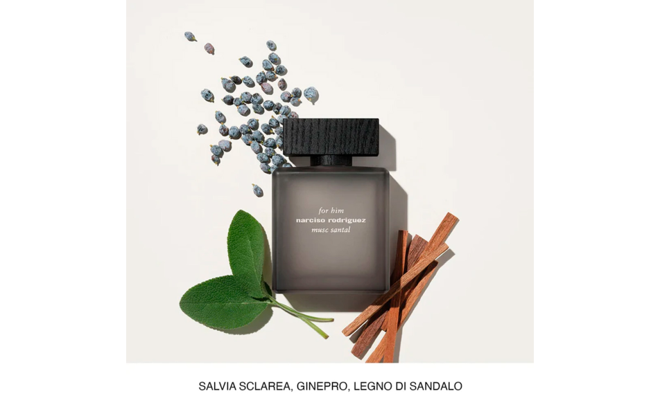 for him musc santal eau de parfum intense di Narciso Rodriguez è il nuovo profumo maschile che cattura l’essenza di una mascolinità moderna, intensa e raffinata. Una fragranza irresistibile pensata per l’uomo che affascina con il potere silenzioso del suo carisma naturale, dove sicurezza e sensibilità convivono in perfetto equilibrio.