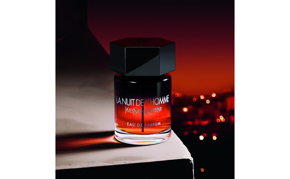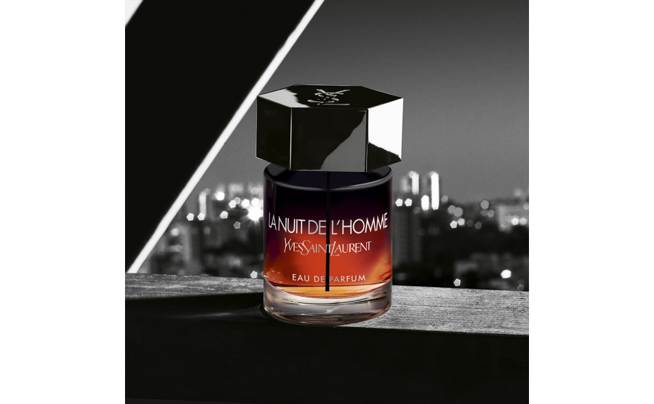 Il flacone iconico della franchise La Nuit de L'Homme si presenta in un nero sfumato, con il tappo esagonale riconoscibile e il logo cassandra YSL. Il colore ardente del juice all'interno del flacone richiama l'intensità di un tramonto appassionato, enfatizzando la mascolinità sensuale che caratterizza il mondo de La Nuit de L'Homme.