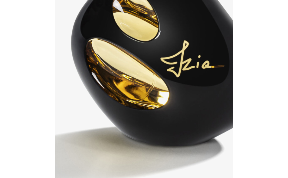 Il flacone scultura, creato dall'artista Bronislaw Krzysztof, si tinge di una laccatura brillante e misteriosa. Nero e profondo, contrasta con la delicatezza del vetro dorato in cui si riflette la sua fragranza luminosa.