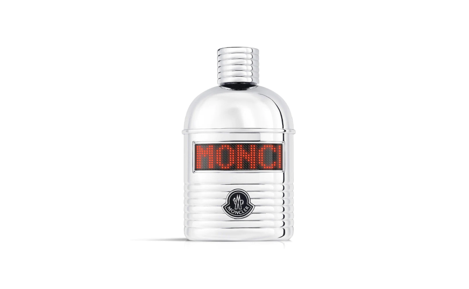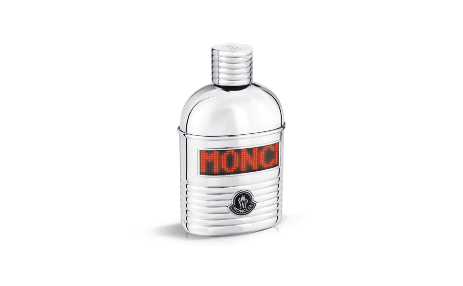 La fragranza Moncler Pour Homme è racchiusa in un flacone a forma di borraccia circondata da un rivestimento laccato in metallo e in finitura trapuntata - un richiamo alle origini "alpine" del brand e all'iconico design trapuntato dei capispalla Moncler.