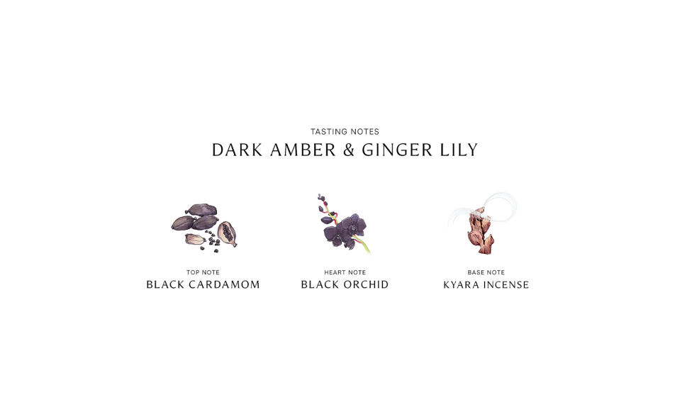 Nota di fondo: Incenso Kyara, importantissimo nella cerimonia Kohdo, l'arte giapponese altamente ritualizzata delicata all'apprezzamento dell'incenso, il raro legno Kyara si unisce al calore dell'ambra scura per dare alla fragranza la sua distintiva proprietà calmante.