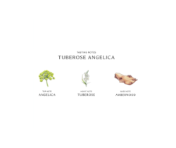 Un giardino a mezzanotte, impreziosito dall’ipnotica tuberosa. Il profumo inebriante e ipnotico di questa elegante fioritura si unisce al verde dell’angelica e al calore dell’ambra. Voluttuoso e sontuoso.