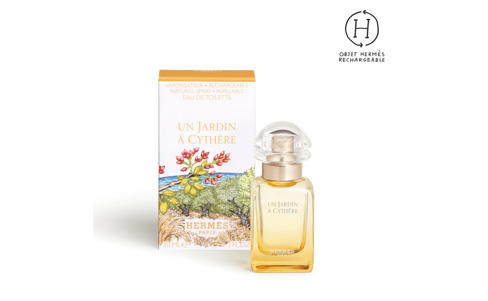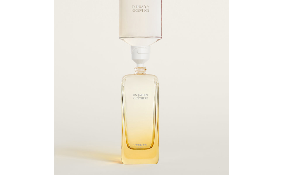 Un Jardin à Cythère, l'eau de toilette creata da Christine Nagel, parfumeur di Hermès, è una fragranza sorprendente che incarna la ricerca olfattiva attraverso il Peloponneso fino all'isola greca di Citera, fonte di ispirazione per numerosi artisti. Contrariamente a quanto ci si potrebbe aspettare da un giardino, questa fragranza agrumata e boisé non è né verde né fiorita, ma ha il colore del sole.
