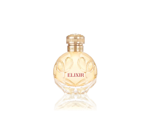 Il flacone di Elixir si presenta come una sfera preziosa e sfaccettata, con un tappo dorato che richiama il patrimonio couture del marchio Elie Saab. Il nome della fragranza, scritto in sensuali lettere rosse, completa il design raffinato e seducente.