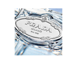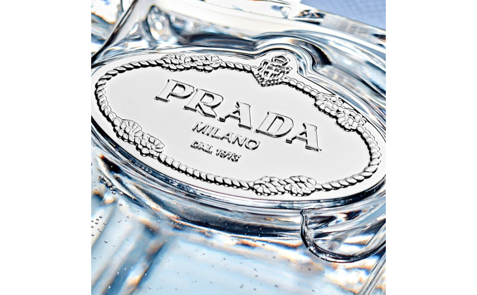 Il flacone del profumo Infusion d'Amande rappresenta la quintessenza dei codici distintivi di Prada. Il tappo in pelle saffiano blu richiama la dolcezza dell'infuso.