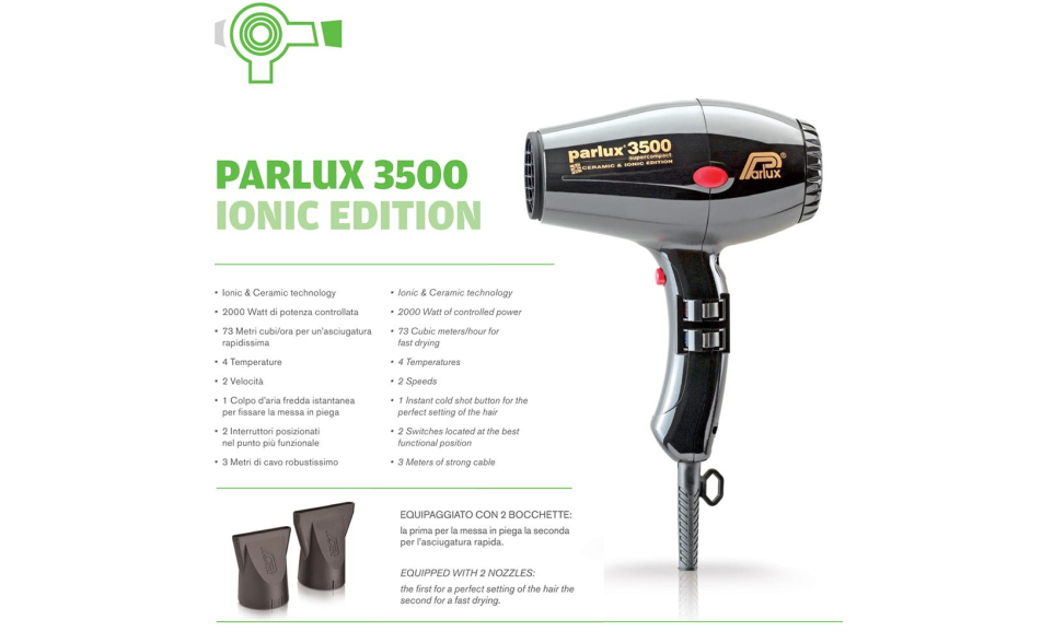 Parlux Phon 3500 Ionic Edition è un asciugacapelli leggero e maneggevole per un miglior confort d’uso.