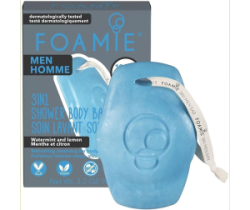 Foamie bagnoschiuma uomo è la soluzione ideale per una pulizia rapida, efficace e completa grazie al suo formato solido multifunzionale che può essere utilizzato per detergere viso, corpo e capelli.