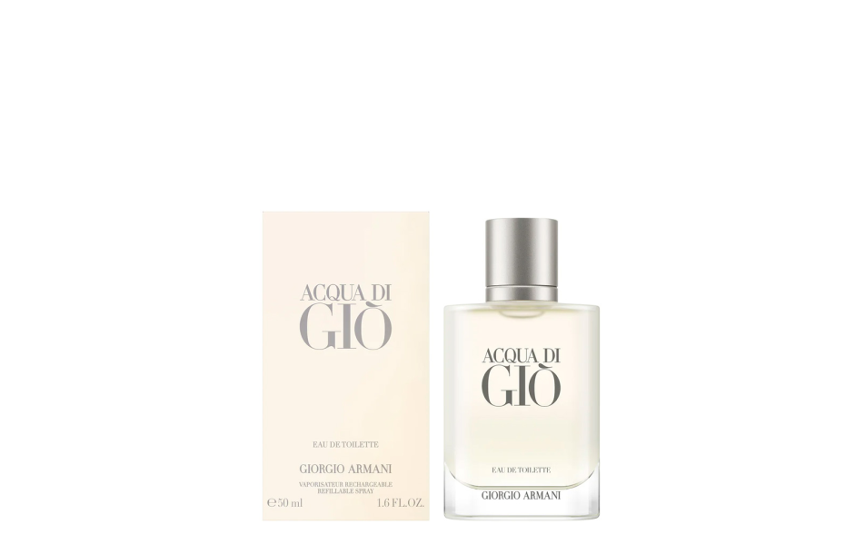 Scopri l'eleganza naturale di Acqua di Giò, che evoca una forte brezza marina armonizzata con sfumature acquatiche, floreali e fruttate.
