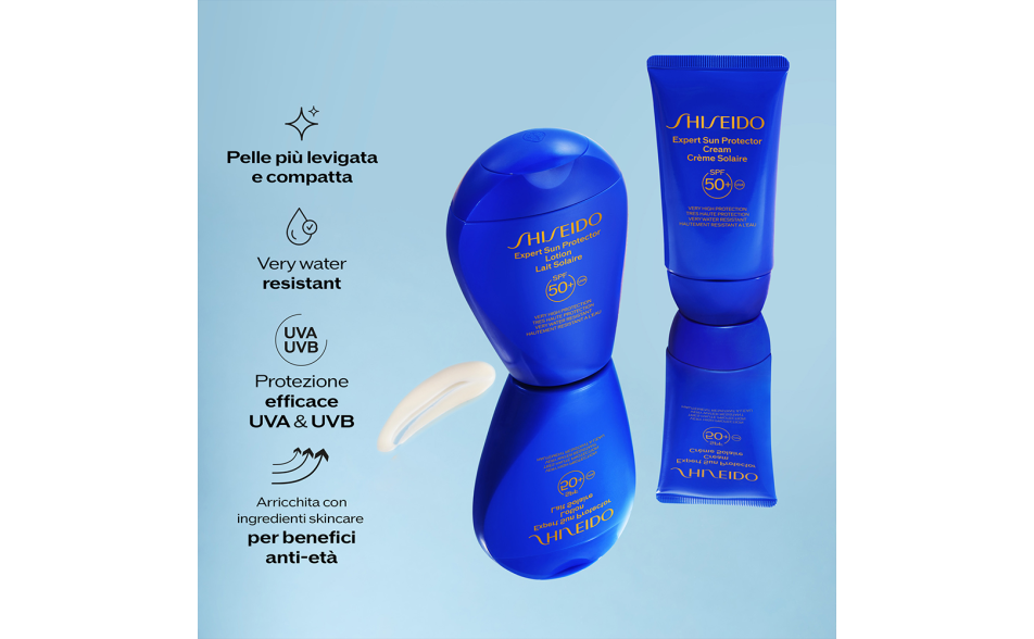 Composizione: Scegli il meglio del trattamento solare Shiseido con Shiseido Sun Expert Protector Cream SPF30.