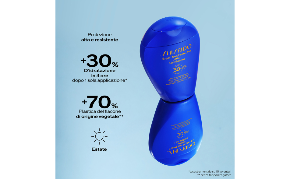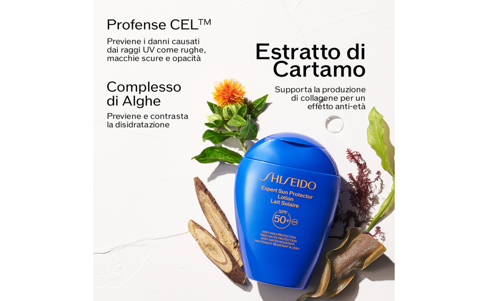 Composizione: Scegli il meglio del trattamento solare Shiseido con Shiseido Sun Expert Protector Lotion SPF50+.