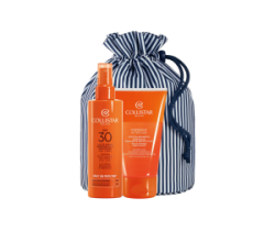 La pratica trousse in plastica 100% riciclata dal design essenziale è abbinata ai Solari Collistar più amati. Scegli la tua combinazione preferita tra le proposte e sentiti glamour anche in vacanza!