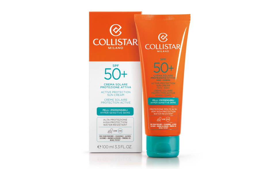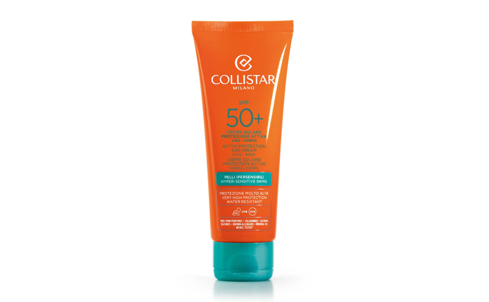 Collistar Crema Solare Protezione Attiva è una crema ultra-morbida che, pur essendo water resistant e ad alta protezione solare, risulta sorprendentemente lieve sul viso e si assorbe subito conferendo una immediata sensazione di levigatezza e benessere.