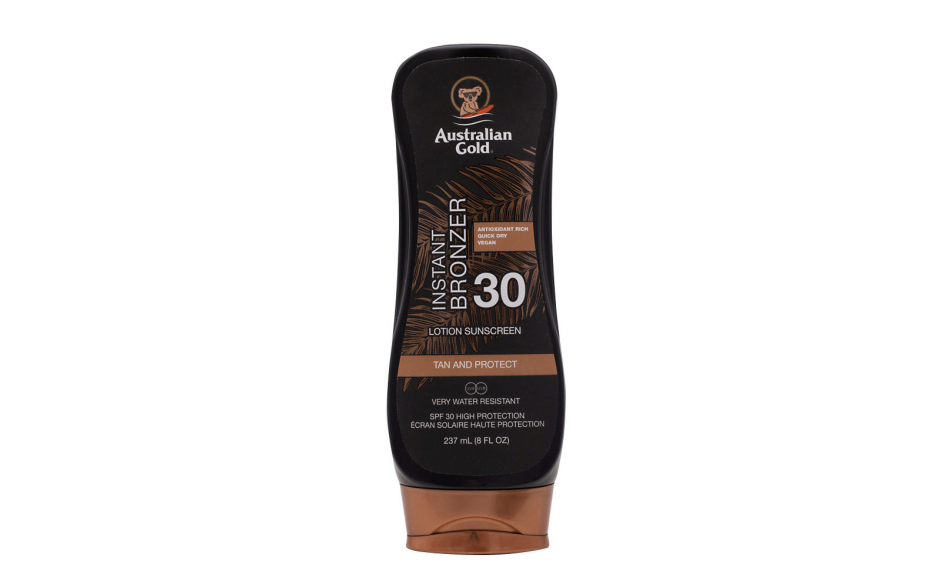 Australian Gold Lotion Sunscreen Bronzer Spf è una lozione che offre una protezione ottimale contro l'aggressione dai raggi UVA/UVB, con estratto di Kona Coffee per un effetto tonificante sulla pelle e Instant Bronzer (senza DHA) per un colorito ancora più scuro. Resistente all'acqua.