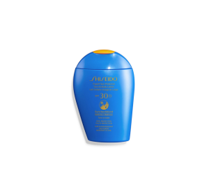 BLUE CONSCIOUS Il velo protettivo altamente resistente all'acqua del latte solare Shiseido assicura inoltre una minore dissoluzione del prodotto quando si entra in acqua rispetto agli schermi solari non waterproof.