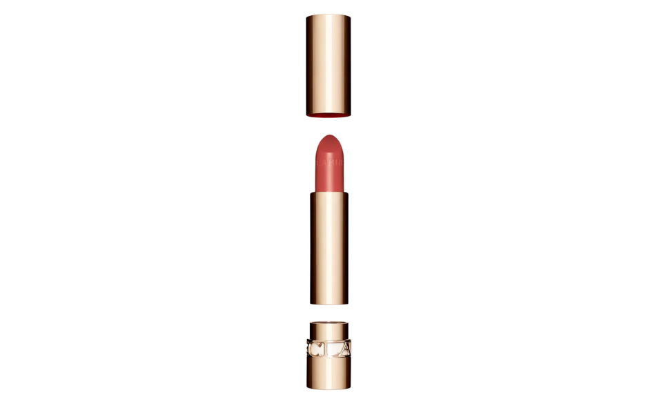 Il rossetto classico di Clarins, Joli Rouge, si presenta in una confezione moderna e ultra-femminile, che si distingue per la sua eleganza e praticità.