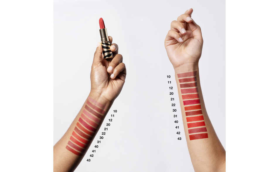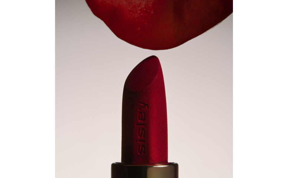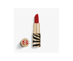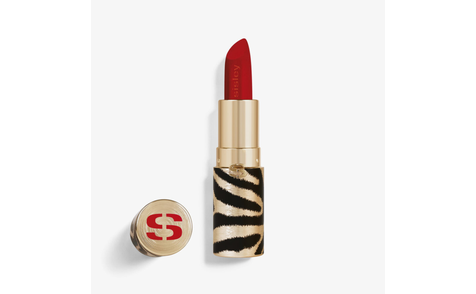 Phyto-Rouge Velvet è custodito in un elegante packaging dorato opaco con strisce zebrate nere, e il bullet sfaccettato consente un’applicazione precisa.