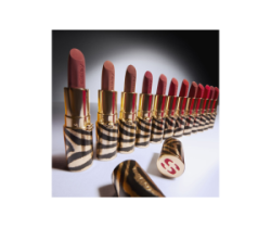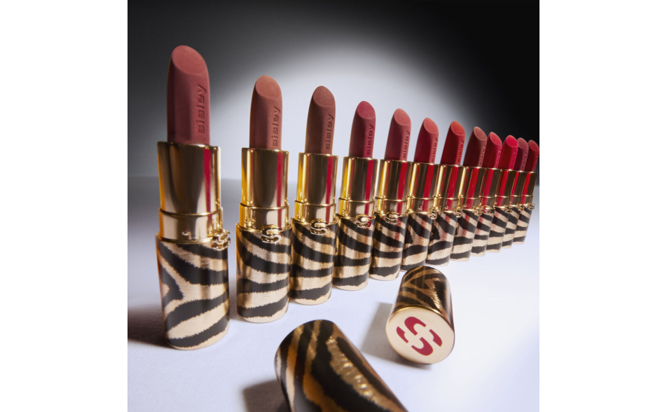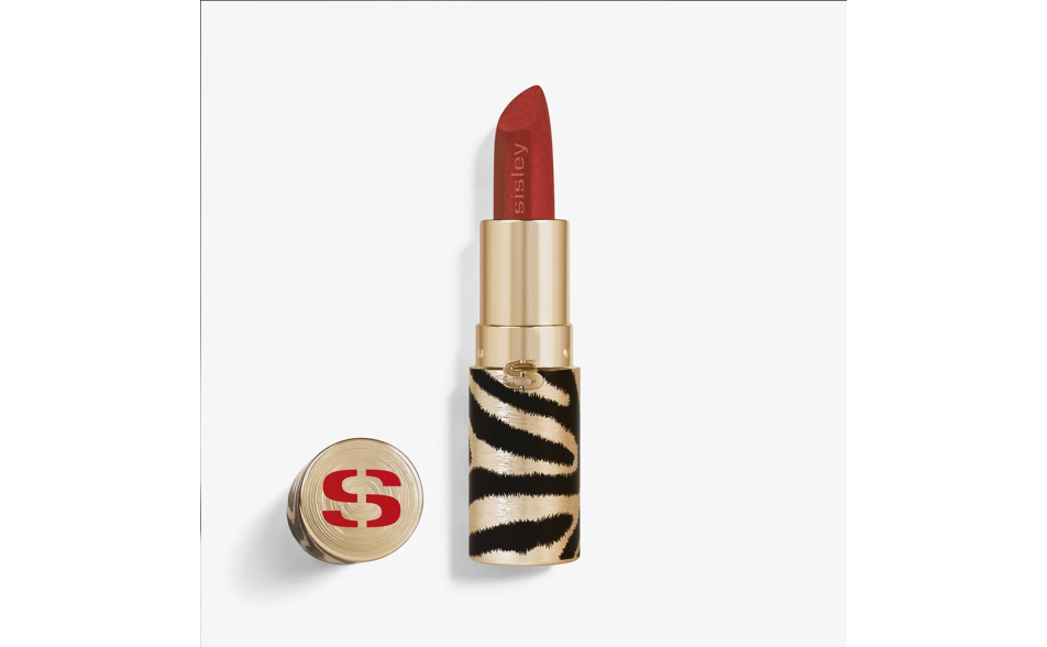 Phyto-Rouge Velvet è custodito in un elegante packaging dorato opaco con strisce zebrate nere, e il bullet sfaccettato consente un’applicazione precisa.