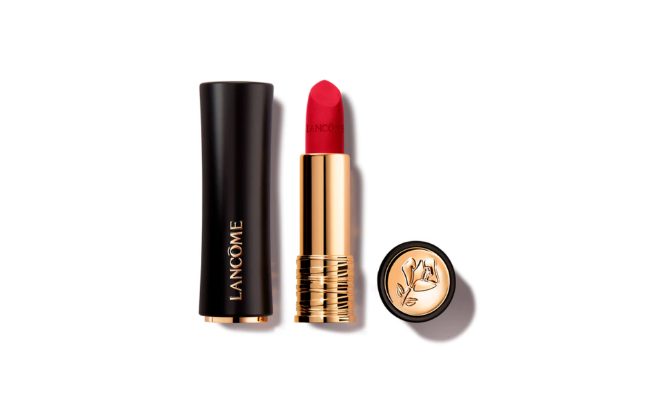 Il rossetto Lancôme L'Absolu Rouge Drama Matte offre un finish matte in polvere audace e un comfort a lunga durata per labbra impeccabili.