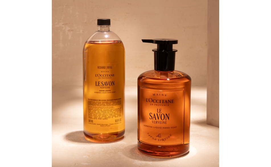 Un sapone liquido formulato senza olio di palma e realizzato secondo la tradizione dei maestri saponai della Provenza. Arricchito con karité, deterge delicatamente lasciando la pelle morbida e avvolta nella fragranza fresca e vivace della verbena.