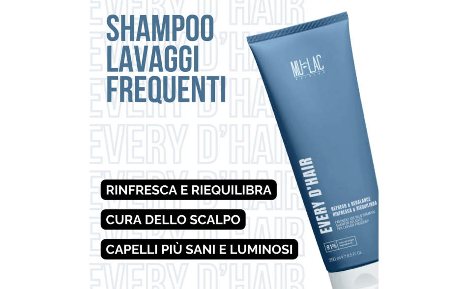Shampoo ideale per lavaggi frequenti, delicato e efficace. Riequilibra lo scalpo senza seccarlo, preservando la salute e la luminosità dei capelli.