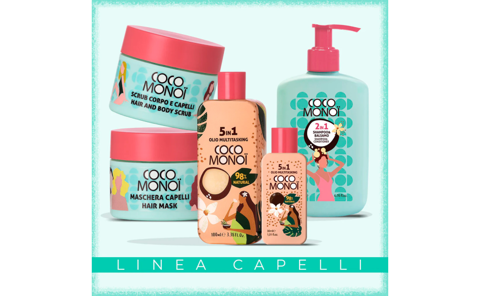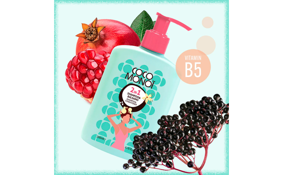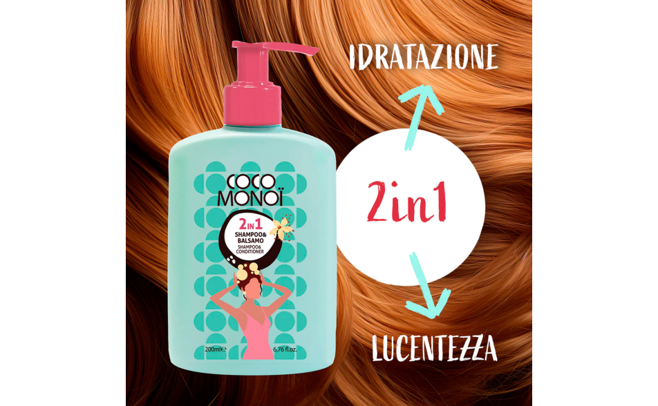 COCO MONOÏ 2 in 1 Shampoo + Balsamo è il segreto per capelli idratati, luminosi e profumati al cocco e fiori di Tiaré. In un solo gesto, deterge delicatamente e districa senza appesantire, rispettando l’equilibrio di cute e capelli.