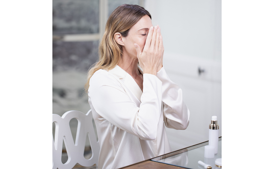 1/ Applicare il siero con movimenti leggeri dal centro verso l'esterno del viso.