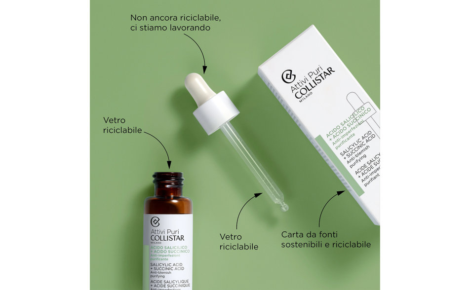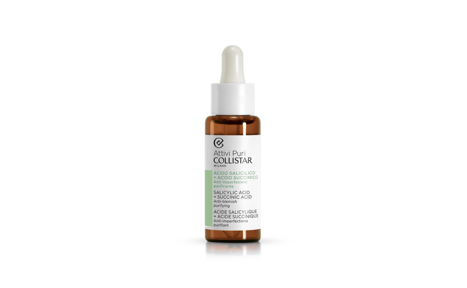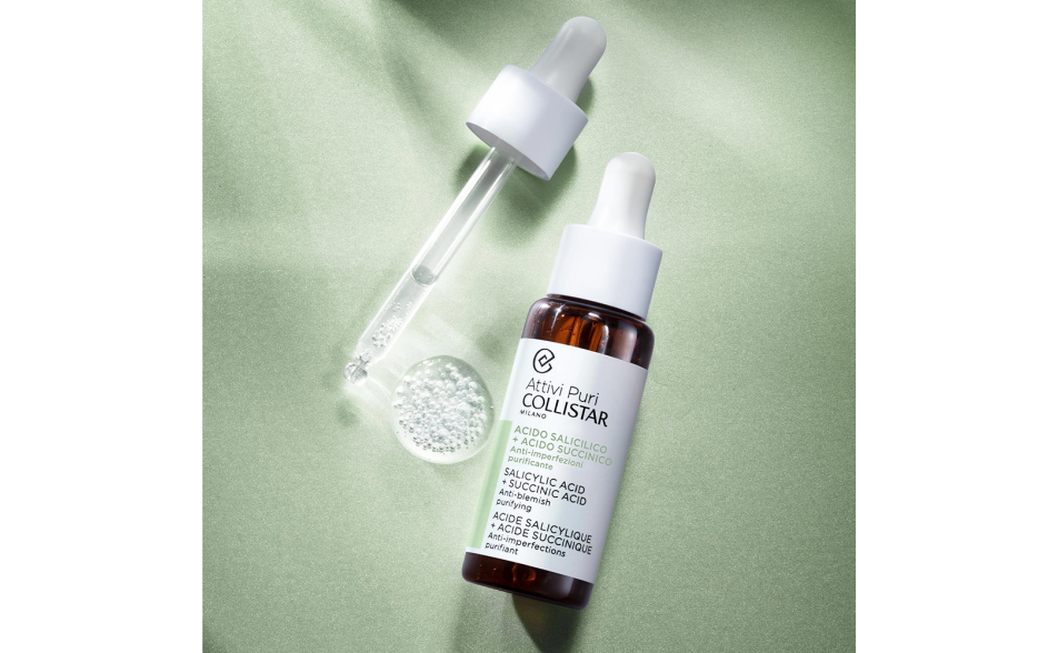 Trattamento in gocce concentrato con Acido Salicilico che purifica progressivamente la pelle liberandola dalle imperfezioni. All'Acido Salicilico è associato l'Acido Succinico preziosa molecola dalle proprietà antibatteriche e antiossidanti capace di regolare la produzione di sebo e prevenirne l'accumulo all'interno dei pori.