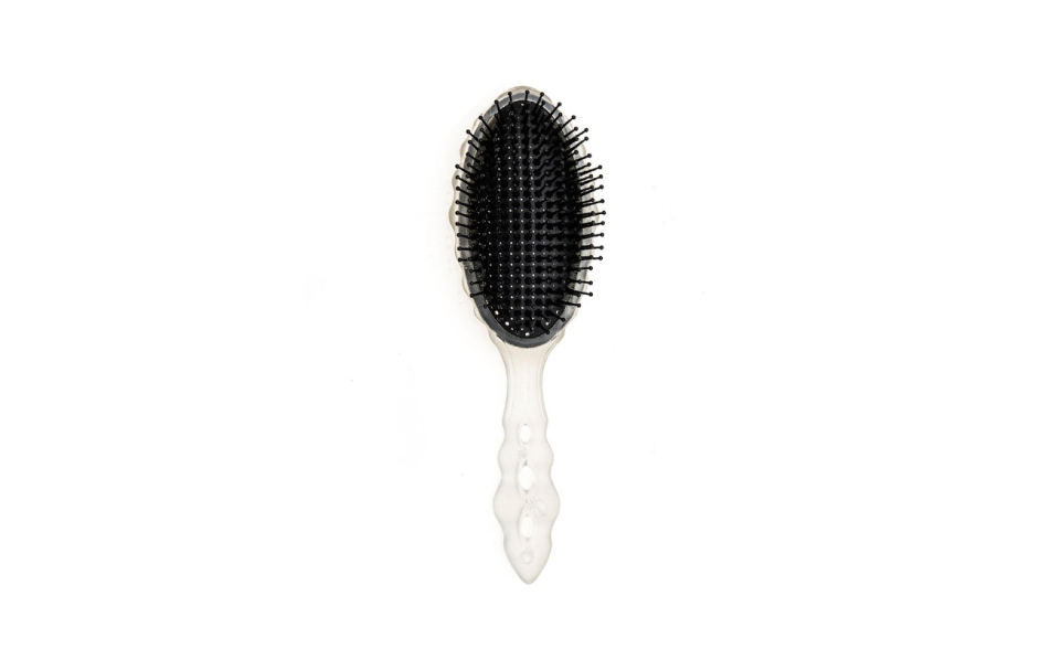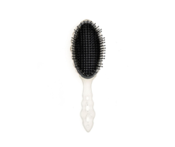 Le setole hanno forma esagonale alla base e arrotondata in testa per avere una tensione uniforme. Forma ergonomica per una facile impugnatura che permette di spazzolare con le mani senza toccare la testa. Ideale per dare lucentezza ai capelli e per lavorare su piccole sezioni, anche nel contorno orecchie.