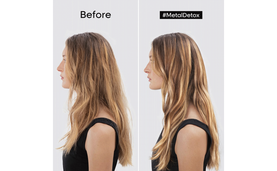 Il metallo all'interno della fibra capillare crea sia un rischio di rottura sia influisce negativamente sui risultati del colore durante i servizi di colorazione, balayage e schiaritura. Il pre-trattamento neutralizzatore del metallo Metal-Detox neutralizza il metallo all'interno della fibra capillare e la protegge prima dei servizi di colorazione, balayage o schiariture. Poiché la formula penetra all'interno della fibra capillare, il risultato colore è omogeneo, dura più a lungo e i capelli sono intensamente luminosi.