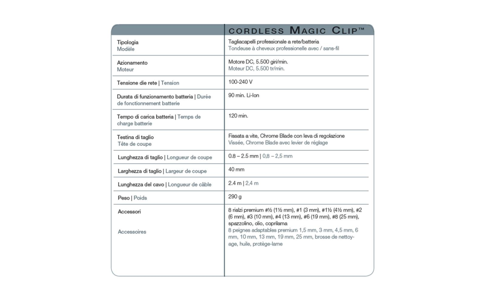 La Tosatrice Magic Clip Cordless Wahl è studiata per realizzare tagli sfumati e di precisione.